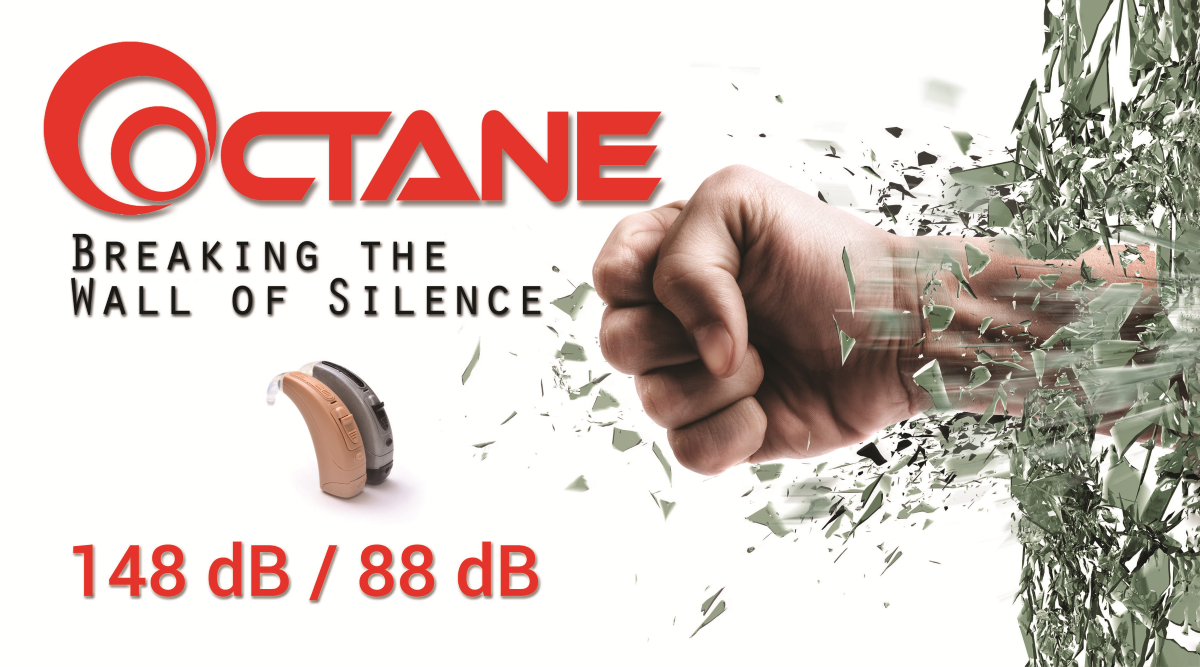 Read More...Audina® Introduces the Octane® Family of SUPER POWER BTEs. Able to achieve 148dB of output and 88dB maximum gain the product is available in a 4, 6 or 12 channel configuration. Using a customized dual receiver the Octane is able achieve these power levels while maintaining stable performance free of feedback. Standard features include low level expansion, adaptive feedback cancellation, adaptive directional microphones (6 and 12 channel only), voice prompts, up to 4 memories and rocker volume control. The elegant case design provides the smallest possible packaging while still utilizing a 675 battery.